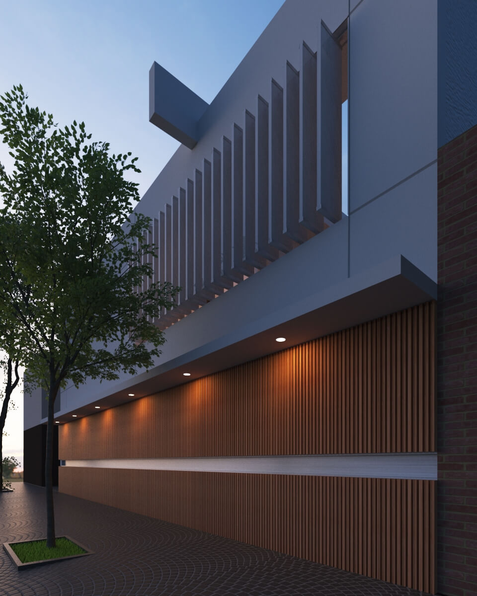 La propuesta para esta vivienda fue priorizar los espacios verdes y privados. De este modo se busca hermetizar la vivienda hacia la calle proyectando los espacios de uso público hacia el patio de la vivienda, quedando las cocheras y el acceso principal armando un bloque sobre el acceso mientras que el dormitorio principal aprovecha las visuales elevadas frente a la plaza.